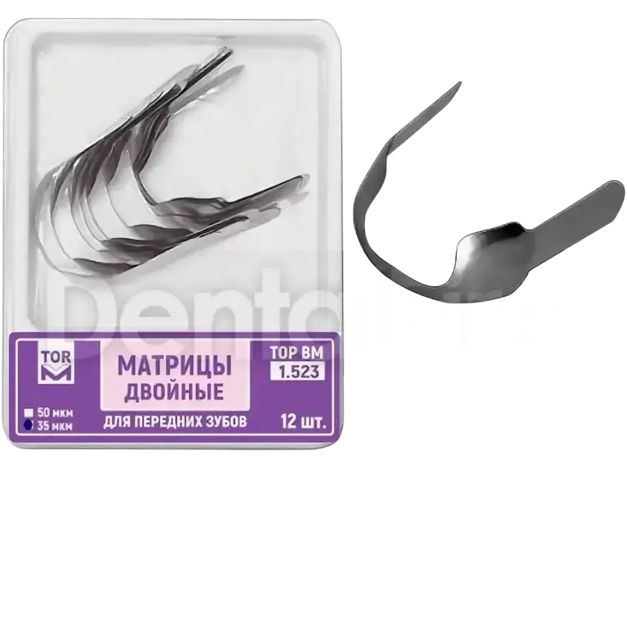 Матрицы двойные для передних зубов №1.523 удобны для реставрации апроксимальных и цервикальных поверхностей передних зубов.