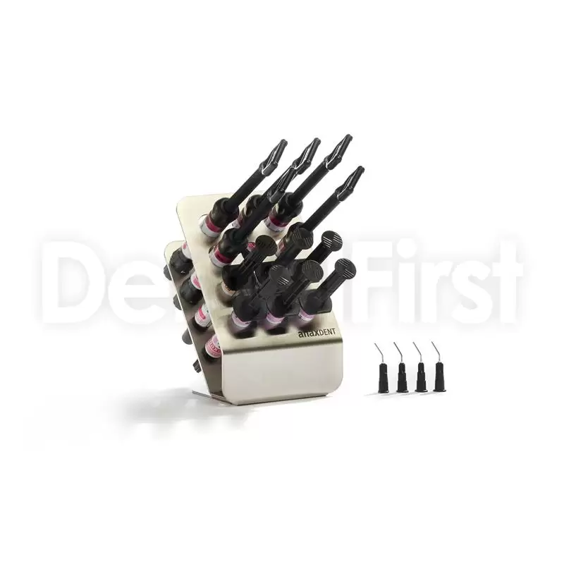 anaxgum - композит цвета десен для эстетического восстановления десен. Комплект XL обеспечивает обширную работу с anaxgum. Произвольно расширяемый. Состоит из: Непрозрачный 3 г: PO I light / PO II dark десен паста 4 г: светло-розовый / темно-розовый / оранжевый розовый / фиолетовый розовый / коричневый розовый краска 3 г: красный / фиолетовый / крем / темно-коричневый anaxrack XL 4 аппликационные канюли 4 колпачковые канюли