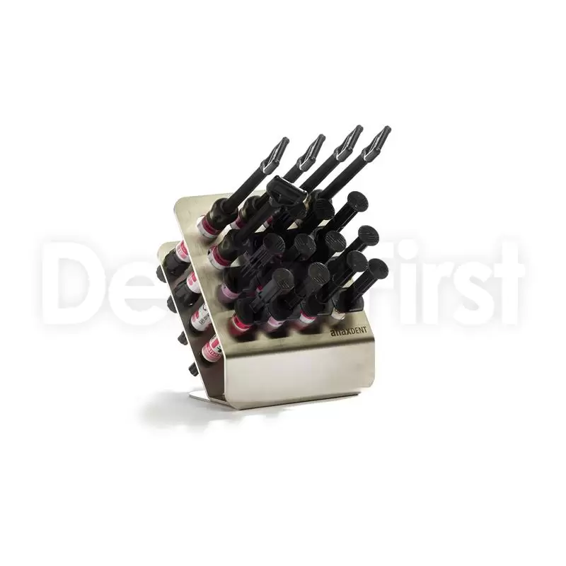 anaxgum - композит цвета десен для эстетического восстановления десен. Anaxgum Kit XXL выполнен во всех цветах, оснащен пастой и потоковыми массами. Состоит из: Непрозрачный 3 г: PO I light / PO II dark Gingiva Paste 4 г: светло-розовый / темно-розовый / оранжевый розовый / коричневый поток десен 3 г: светло-розовый / темно-розовый / оранжевый розовый / полупрозрачная розовая краска 3 г: красный / фиолетовый / желтый / крем / темно-коричневый anaxrack XXL 9 канул аппликации 9 канул крышки