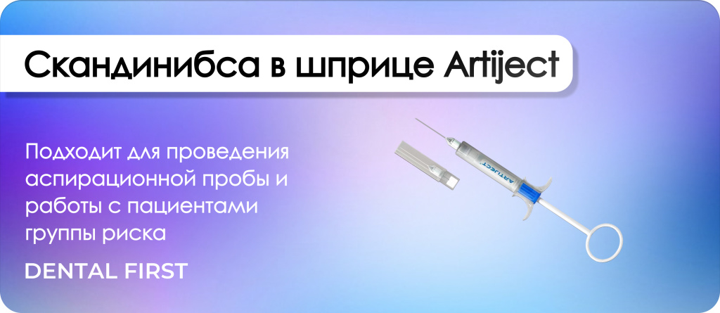 Скандинибса от ARTIJECT - это инновационное решение для проведения анестезии в стоматологии, объединяющее удобство карпульной технологии с высокой степенью инфекционной безопасности. Одноразовый формат инъектора устраняет риски перекрестного заражения, обеспечивая защиту как пациента, так и врача.