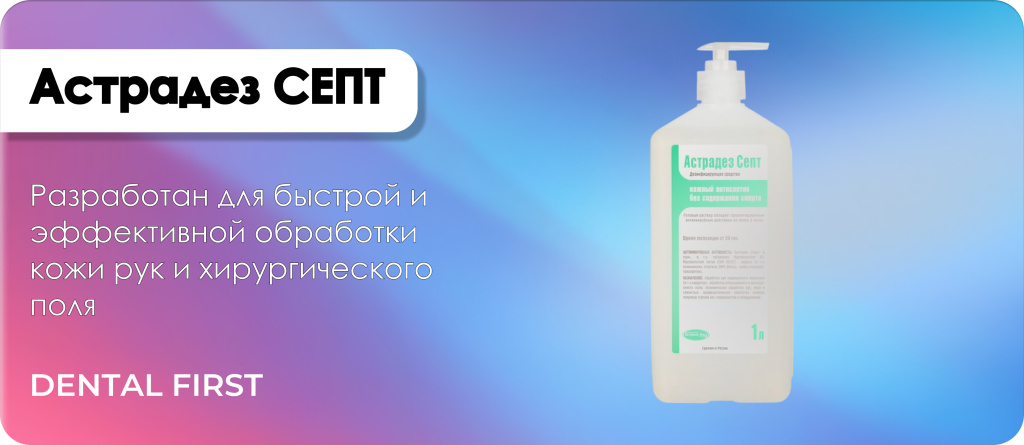 Астрадез СЕПТ от Гигиена-Мед - готовый к применению кожный антисептический раствор на основе изопропилового спирта и ухаживающих компонентов. Разработан для быстрой и эффективной обработки кожи рук и хирургического поля в медицинских, стоматологических и косметологических учреждениях. Форма выпуска с удобным дозатором обеспечивает экономичное и гигиеничное использование, а объем 1 литр - оптимален для рабочих зон с высокой проходимостью.