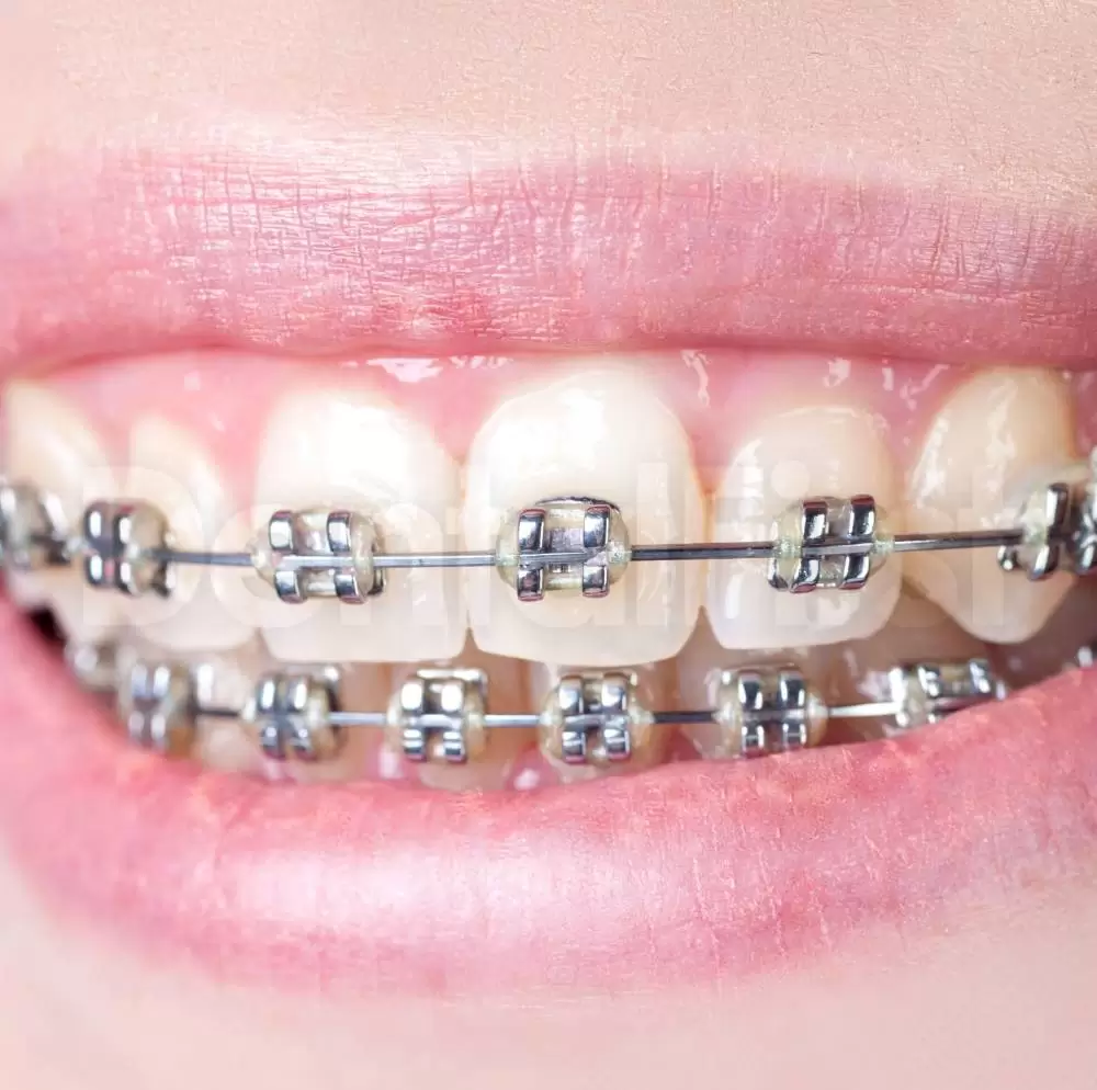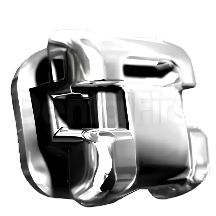Брекет-замочек снабжен закрывающимся пазом-клипсой, в котором находится металлическая дуга, лигатуры уже не нужны.