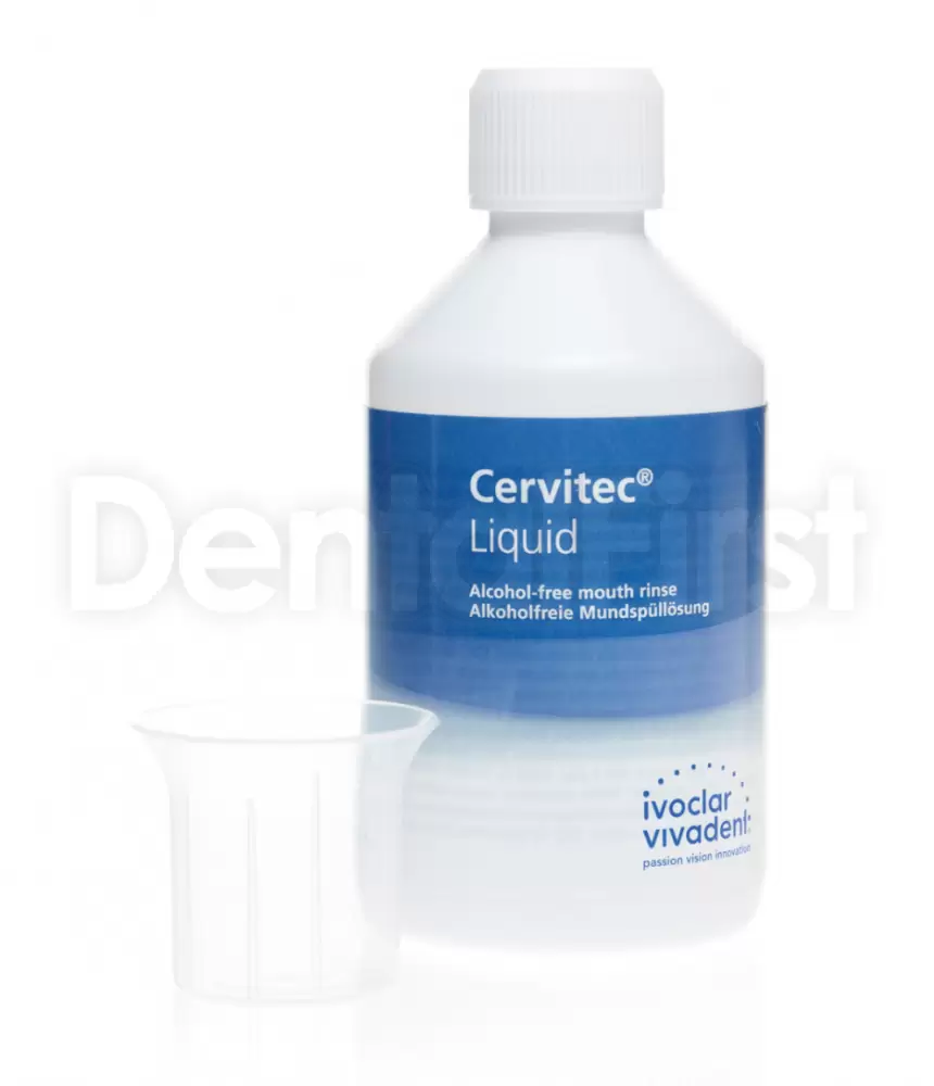 Cervitec Liquid – ополаскиватель для полоскания рта, без спирта, содержит 0,1% раствор хлоргексидина, ксилит и базовые эфирные масла.