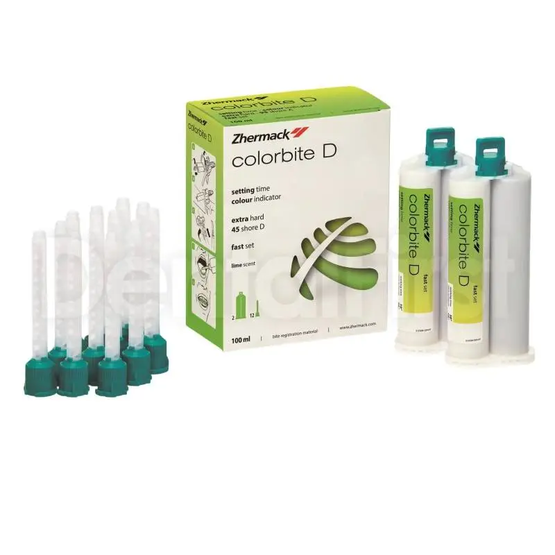 Colorbite D от компании Zhermack - термохроматический А-силикон для регистрации прикуса, меняющий цвет по завершении схватывания. Обеспечивает высокую точность, стабильность размеров и комфорт для пациента благодаря мягкой консистенции и аромату лайма. Идеален для всех видов прикусной регистрации, включая гнатологическую и ортодонтическую.