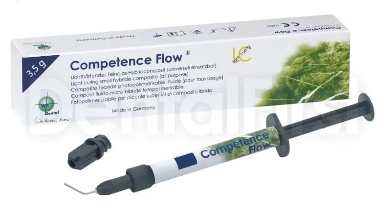 Competence Flow применяется для реставрации полостей V класса, а также небольших дефектов по I и II классам. Идеален для эстетических реставраций передних зубов по III и IV классам, пломбирования микрополостей, ремонта композитных реставраций и герметизации фиссур. Также может использоваться для адгезивной фиксации керамических и композитных вкладок и виниров.