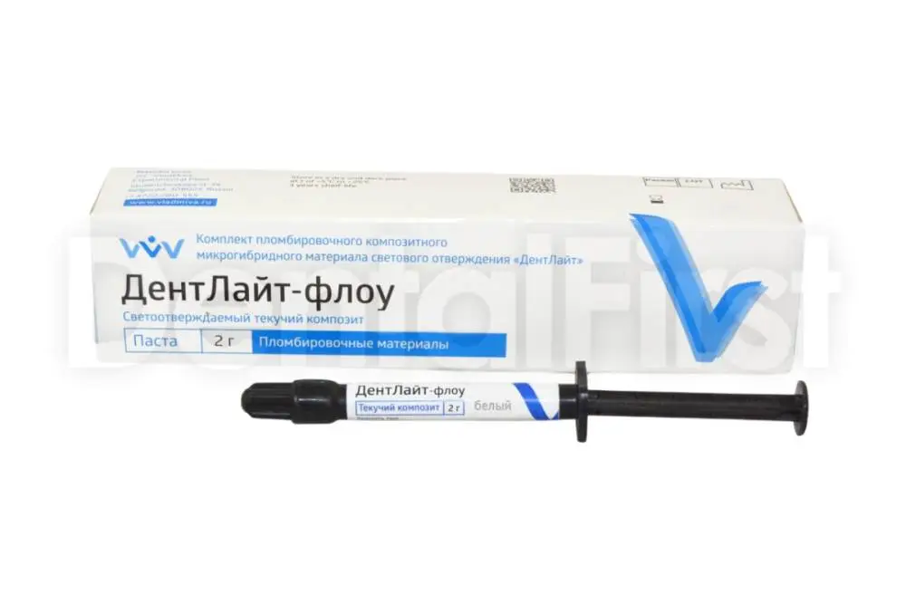 ДентЛайт Флоу белый, текучий композит, шприц (1 x 2 г.), ВладМиВа