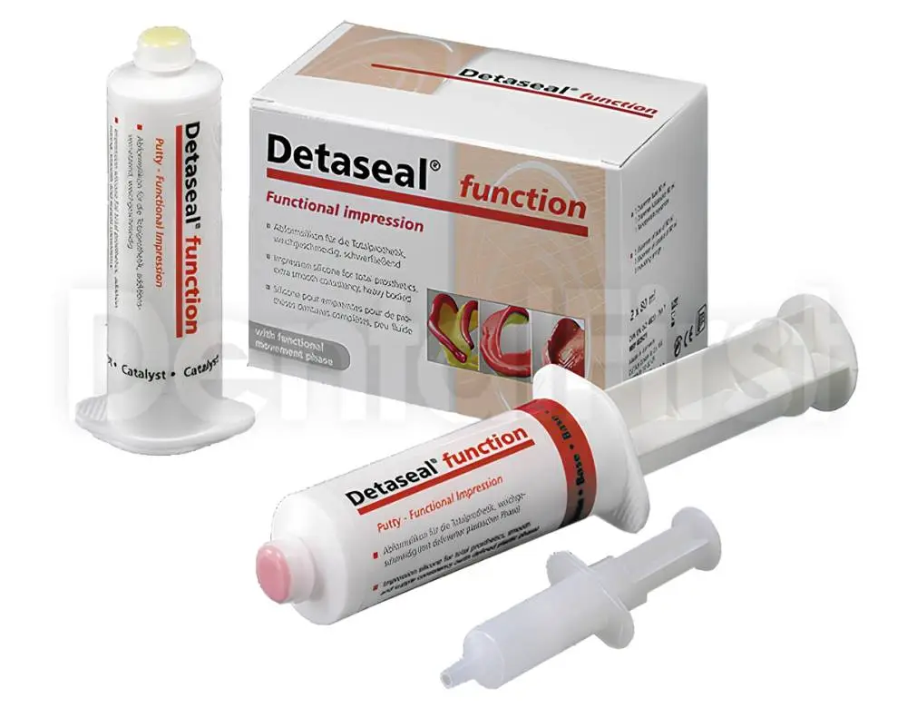 Detaseal Function (2 х 80 мл) от немецкого производителя Detax - это А-силиконовый слепочный материал, предназначенный для снятия функциональных оттисков и оформления краев индивидуальных ложек.
