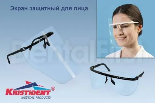 Экран защитный для лица многоразовый предназначен для защиты лица медицинского персонала от воздействия прямого или частично бокового попадания брызг жидкостей и пыли при использовании в стоматологии и челюстно-лицевой хирургии, а также маникюрном, педикюрном сервисе и косметологии.
