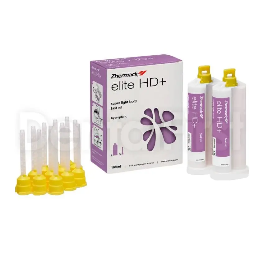 Elite HD+ Super Light Fast Setting - это А-силикон для снятия первого (базового) оттиска. Подходит как для двухэтапной техники (двойной оттиск), так и для одноэтапной (одномоментный оттиск) техники. Гидросовместимый, превосходно распределяется по влажной поверхности, точно отображая рельеф. Тиксотропный, благодаря чему не стекает с места нанесения, но идеально распределяется и фиксирует мельчайшие детали. Не меняет форму после деформации при выведении из полости рта. Рекомендуется комбинировать с материалами HD+ Light Body, HD+ Regular Body или HD+ Super Light Body.