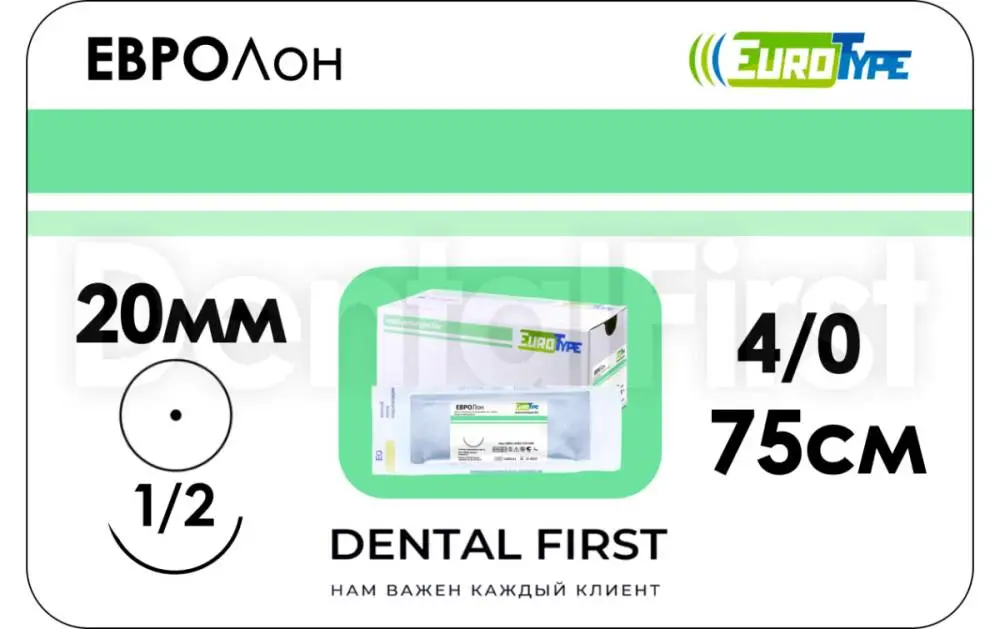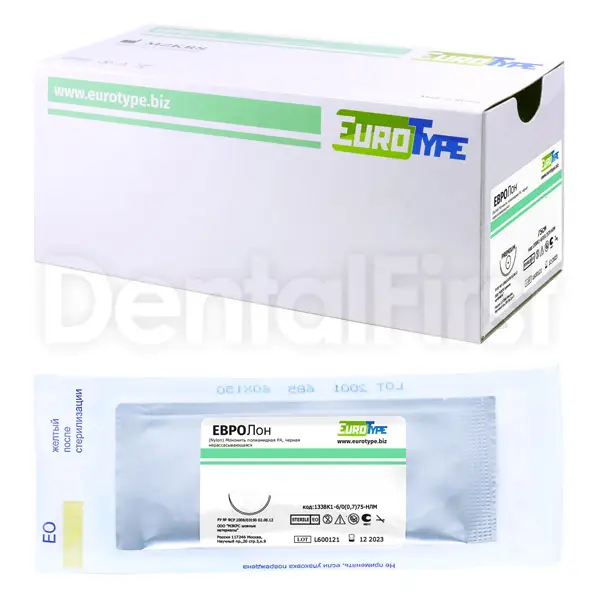 Евролон 4/0 75см, 20мм кол. реж 1/2 от компании EuroType- традиционный нерассасывающийся стерильный хирургический шовный материал. Нить полиамидная (нейлон) монофиламентная (мононить). Обладает гладкой поверхностью, легко скользит, имеет низкую фитильность. Материал является условно нерассасывающимся (потеря прочности 20% в год). Имеет высокую прочность и умеренную реактогенность. Для лучшей идентификации нить окрашена в черный цвет. Игла атравматическая Premium из нержавеющей стали, колюще-режущая, 1/2 окружности. Высокое качество полировки и специальное соединение нити снижает вероятность травмирования сшиваемых тканей.