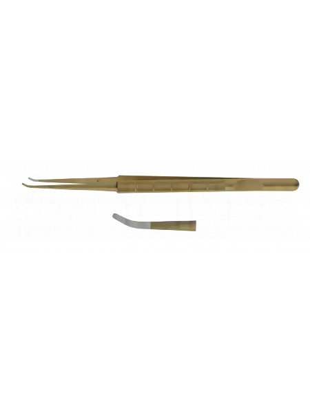 Пинцет шовный F-0896.01D, титановый, плавно изогнутый по радиусу, противовес на конце инструмента, длина рабочей поверхности 5 мм, ширина рабочей части 1,0 мм, общая длина 185 мм.