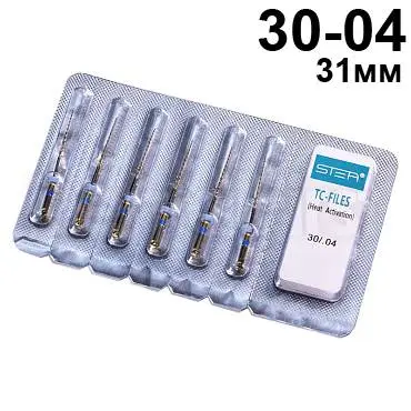 6. / Файлы машинные с памятью формы TC-files, размер 30/.04, длина 31мм, никель-титан - 6 шт. STEA