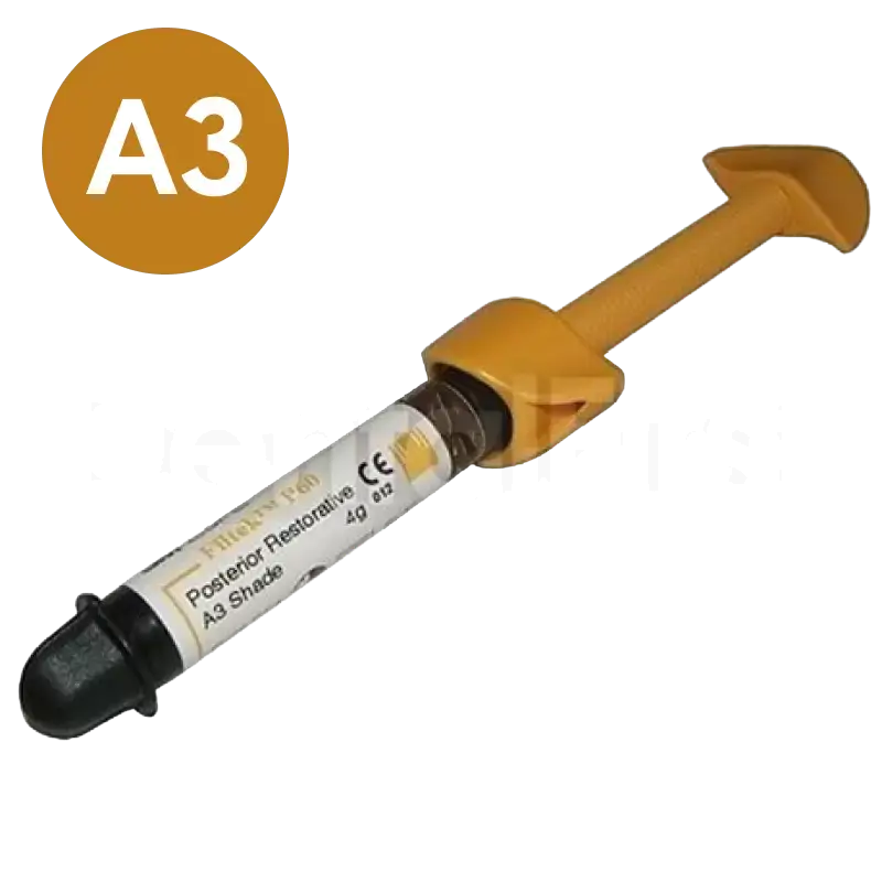 Filtek P60 (Филтек) – светоотверждаемый композитный материал для реставрации жевательных зубов. Обладает высокой прочность. Удобен в работе: легко пакуется, не прилипает к инструментам, при моделировании не стекает и не деформируется. Внесение большими порциями и быстрая полимеризация (слой 2,5 мм за 20 секунд) позволяют сэкономить время при пломбировании обширных полостей Демонстрирует "эффект хамелеона". Композит подходит для полостей всех классов всех групп зубов. Идеален для восстановления боковых зубов (в том числе их жевательной поверхностей).