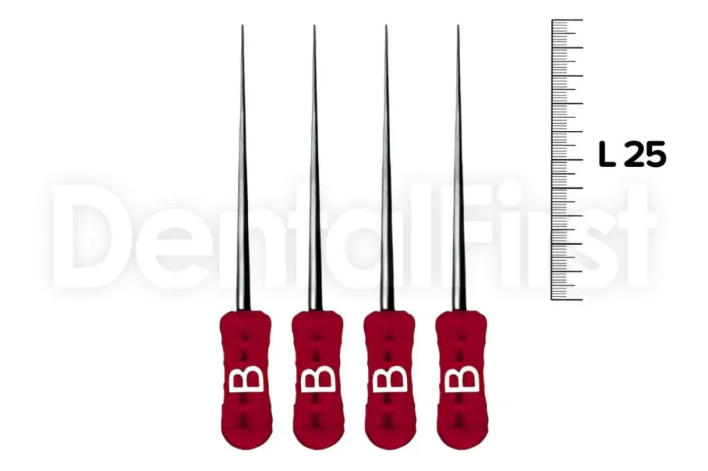 Finger spr.tapered N B L25, 4 шт. - уплотнитель гуттаперчи для латеральной конденсации, ручной. Нержавеющая сталь.