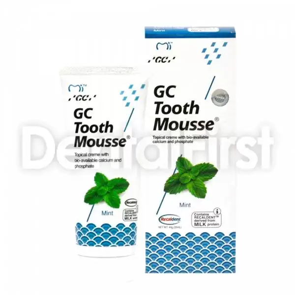 ДЖИ СИ Мусс мята для Зубов - реминерализирующий, водорастворимый стоматологический крем без сахара, в состав которого входит Recaldent CPP-ACP (Казеин Фосфопептид - Аморфный Кальций Фосфат).