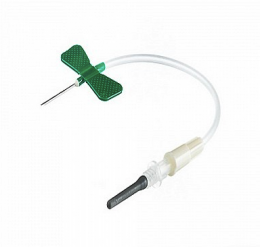 Цветовая кодировка крылышек соответствует диаметру иглы: зеленый цвет - 0,8 мм.