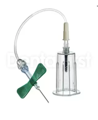 Цветовая кодировка "крылышек" соответствует диаметру иглы: зеленый цвет - 0,8 мм.