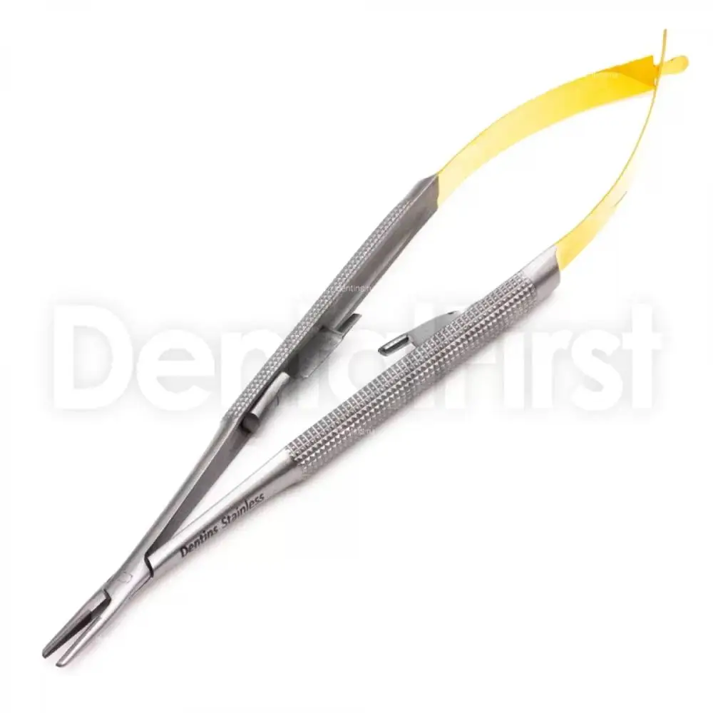 Иглодержатель микрохирургический Кастровьехо (Castroviejo) TC Knurling Gold, 14 см, изогнутый