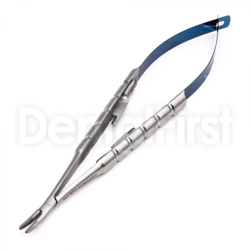Иглодержатель микрохирургический Кастровьехо (Castroviejo) TC Round Blue, 14 см, изогнутый
