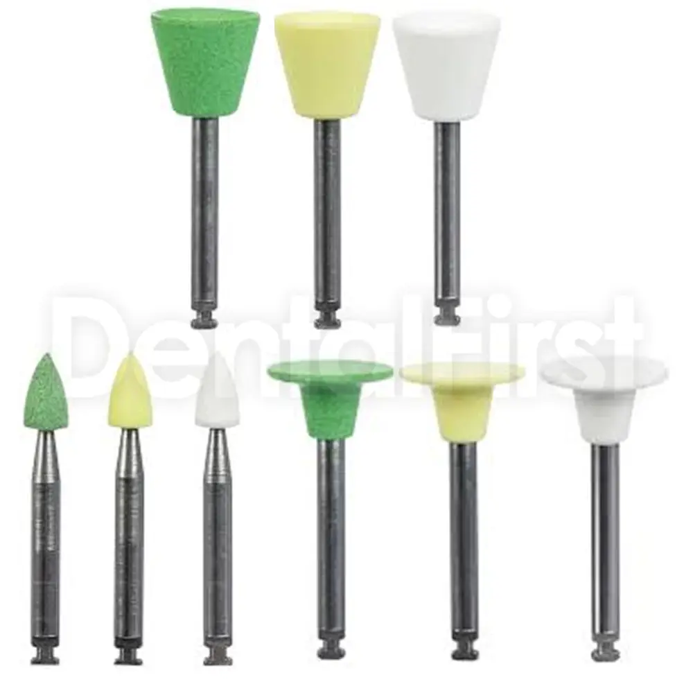 - Комплекс из чашечек, дисков, точек и полировочных щёток с разной степенью зернистости (грубая, средняя, тонкая, ультратонкая), что обеспечивает гибкость и контроль всех этапов обработки.