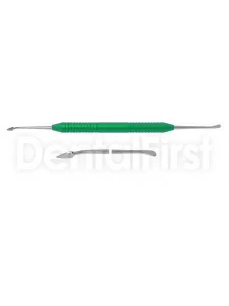 Распатор двусторонний-сосочковый: одна сторона инструмента позволяет выполнять отслаивание слизисто-надкостничного лоскута, другая мобилизацию и отслаивание межзубных десневых сосочков.