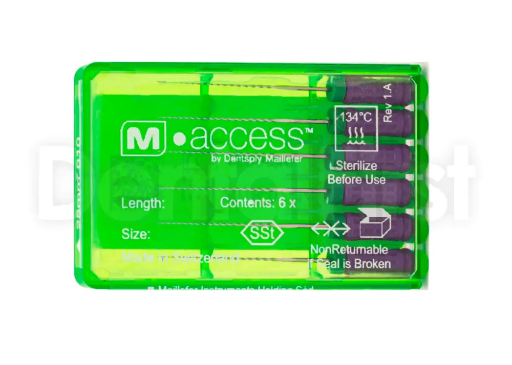 K-Reamer M-ACCESS от компании Dentsply Sirona - ручной каналорасширитель из нержавеющей стали, предназначенный для эффективного прохождения и формирования корневых каналов. Отличается удобством работы, надежностью и соответствием ISO-кодировке благодаря цветным ручкам. Силиконовые стопперы обеспечивают контроль рабочей длины и безопасность манипуляций. Инструмент имеет увеличенный шаг режущих граней, обеспечивающий высокую проходимость, гибкость и режущую эффективность при извлечении.