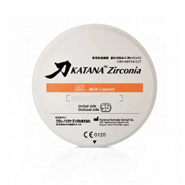 Katana ZR ML, 98,5 x 14 мм, цвет A Light - многослойные циркониевые диски из предокрашенного циркона с плавным переходом цвета от пришеечной области к дентину и затем к эмали.