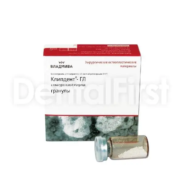 Клипдент ПЛ β-трикальций фосфат в полилактидгликолидной матрице, для заполнения дефектов костной ткани, гранулы 500 - 1000 мкм 0,5 см3 применяются в качестве остеопластического материала, оптимизирующего регенерацию костной ткани в хирургической стоматологии, клинике общей и челюстно-лицевой хирургии, а также в травматологии и ортопедии.