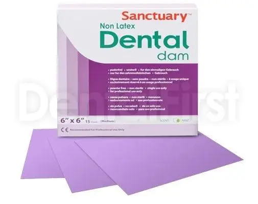 Неопудренный коффердам без содержания латекса Sanctuary Non-Latex Dental Dams. Продукт высшего качества. Производитель: Sanctuary, Малазия.