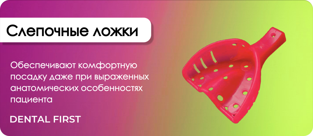 Ложка имеет анатомическую форму и перфорированную поверхность, что обеспечивает надежную фиксацию оттискного материала (альгинат, силикон и др.) и предотвращает его смещение при извлечении из полости рта. Подходит для верхней и нижней челюсти. Может использоваться как в общей терапевтической стоматологии, так и в ортопедической практике.