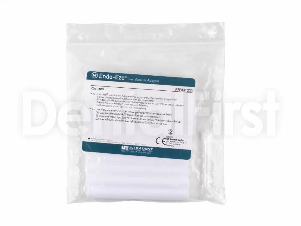 Используется для удаления жидкости из зубного канала. Закрепляется вместо обычного пылесоса, снабжён фиксатором Luer. Адаптер позволяет эксплуатируется с насадками, используемыми для эвакуации растворов, сушки полостей. Существенно уменьшает сроки очистки каналов, расход штифтов на бумажно основе.