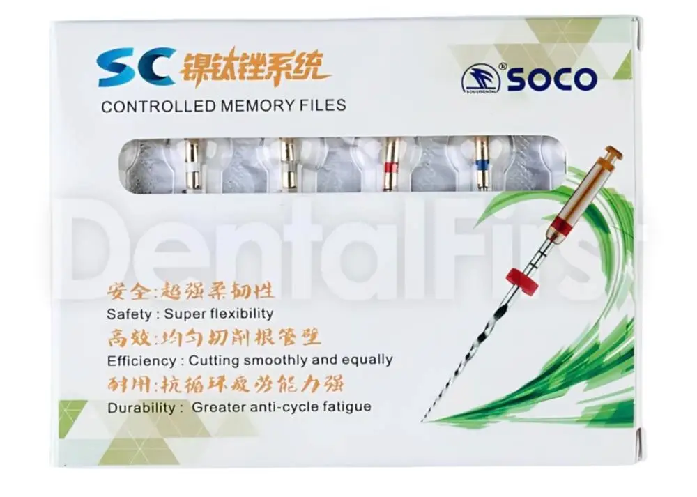 Машинные файлы SOCO SC являются развитием линейки эндодонтических файлов SC - собственной разработки компании SOCO. Набор для эндодонтии повышенной сложности, применяется для тонких и извилистых каналов. Особые свойства материала повышают прочность в три раза  по сравнению с традиционными  никель-титановыми файлами. Официальное количество использований - 30 фронтальных зубов или 5 моляров. Особый механизм обработки поверхности  практически полностью  убирает упругость  файла, что позволяет  обрабатывать каналы,  максимально  сохраняя первичную  анатомию. Легкость в работе этих файлов невозможно передать словами. Простая кривая обучения - официально рекомендованный протокол - метод одной длины. Однако, если вы привыкли  к другим методикам (Crown Down или Step Васк) то универсальность файла позволяет не переучиваться. Компания SOCO - это китайский производитель  высококачественной продукции, имеющий сертификаты качества: европейский СЕ и TUV.