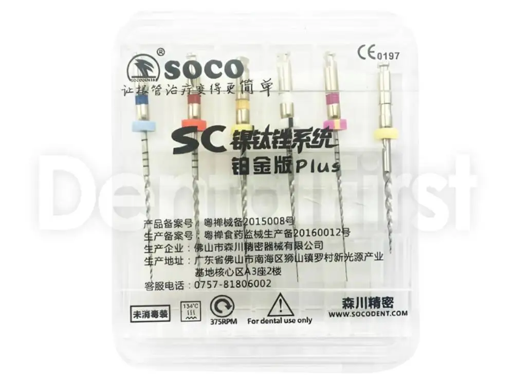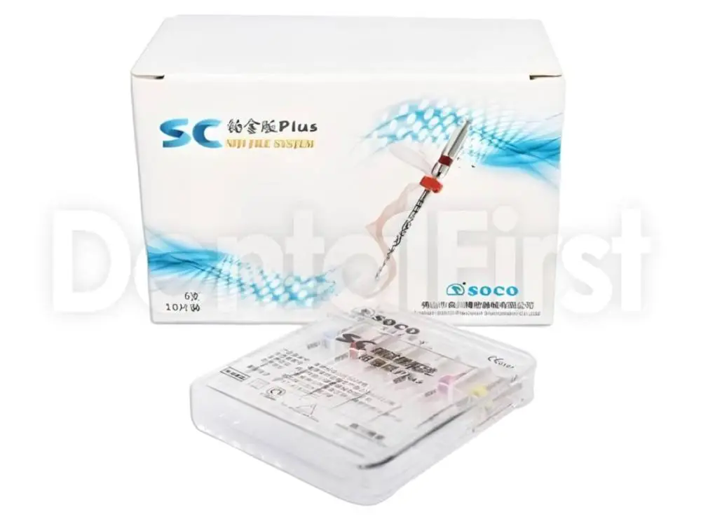 Машинные файлы SOCO SC PLUS являются развитием линейки эндодонтических файлов SC - собственной разработки компании SOCO. Набор для эндодонтии повышенной сложности, применяется для тонких и извилистых каналов. Особые свойства материала повышают прочность в три раза по сравнению с традиционными никель-титановыми файлами. Официальное количество использований - 30 фронтальных зубов или 5 моляров. Особый механизм обработки поверхности практически полностью убирает упругость файла, что позволяет обрабатывать каналы, максимально сохраняя первичную анатомию. Легкость в работе этих файлов невозможно передать словами. Простая кривая обучения - официально рекомендованный протокол - метод одной длины. Однако, если вы привыкли к другим методикам (Crown Down или Step Васк), то универсальность файла позволяет не переучиваться. Компания SOCO - это китайский производитель высококачественной продукции, имеющий сертификаты качества: европейский СЕ и TUV.