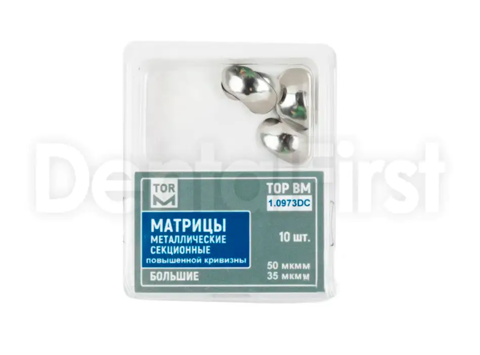 140 ₽ Бонус: 1.40 руб. Матрицы 1.0973DC контур.секц.метал.(бол.) повыш. кривизны 50 мкм (10 шт) ТОР ВМ
