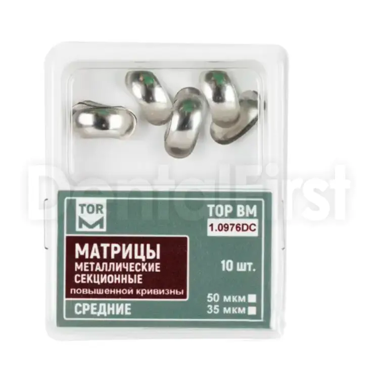 140 ₽ Бонус: 1.40 руб. Матрицы 1.0976DC контур.секц.метал.(средн.) повыш. кривизны 50 мкм (10 шт) ТОР ВМ
