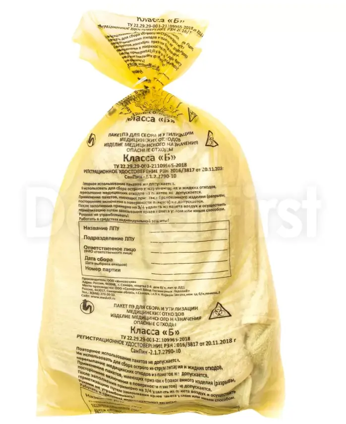 Мешки для утилизации медицинских отходов класса Б от производителя Инновация - предназначены для безопасного сбора и транспортировки медицинских отходов, соответствующих стандартам безопасности. Изготовлены из прочного полиэтилена, они обеспеч