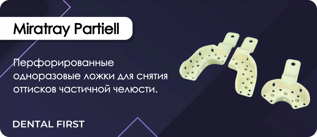 Miratray Partiell часто применяются в ортопедической стоматологии, особенно когда требуется быстрое и точное снятие оттиска в условиях частичного отсутствия зубов.