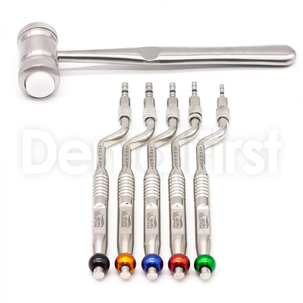 Набор из 5 изогнутых остеотомов для закрытого синус-лифтинга и молотком
