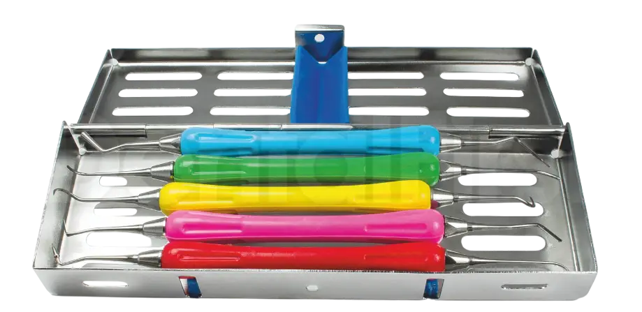 Набор (ПО ТИПУ LM) гладилок для моделирования пломб с силиконовой ручкой из 5-ти инструментов с кассетой стерилизационной