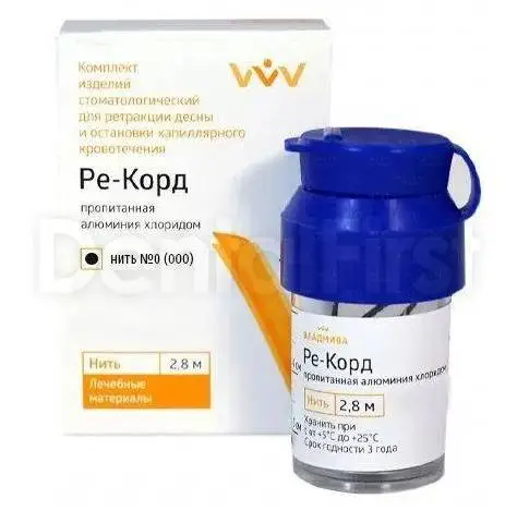 Ретракционная нить «Ре-Корд» представляет собой готовую к применению форму: скрученные хлопковые волокна, обработанные по специальной технологии.Терапевтический эффект жидкости «Ре-Корд» связан с вяжуще-сокращающими свойствами хлористого алюминия, входящего в состав.