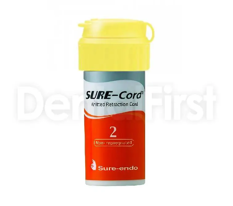 Ретракционная нитка "Sure-Cord". Вязаные петли нити, которые в свою очередь переплетаются между собой, способны поглощать значительно большее количество гемостатического раствора, а также служат отличным средством доставки в операционное поле препаратов в форме геля. Обладает большей абсорбирующей способностью, чем крученые или плетеные нити. Во время препарирования вязаная нить не наматывается на алмазный бор. Идеально подходит для ретракции десны и легко пакуется в зубодесневую бороздку. Бутылочка-контейнер маркирована по цвету нити. Благодаря цветной маркировке можно быстро и легко выбрать подходящие нити, а также распознать их в зубодесневой бороздке.