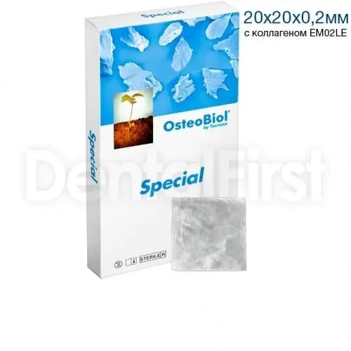 8500 ₽ Бонус: 85 руб. OsteoBiol Special мембрана резорбируемая конская 20х20мм 0,2мм 1шт