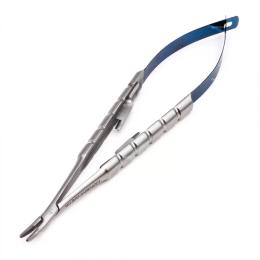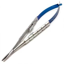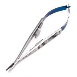 Иглодержатель микрохирургический Кастровьехо (Castroviejo) TC Round Blue, 14 см, изогнутый