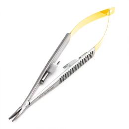 Иглодержатель микрохирургический Кастровьехо (Castroviejo) TC Flat Gold, 14 см, изогнутый