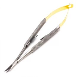 Иглодержатель микрохирургический Кастровьехо (Castroviejo) TC Knurling Gold, 14 см, изогнутый