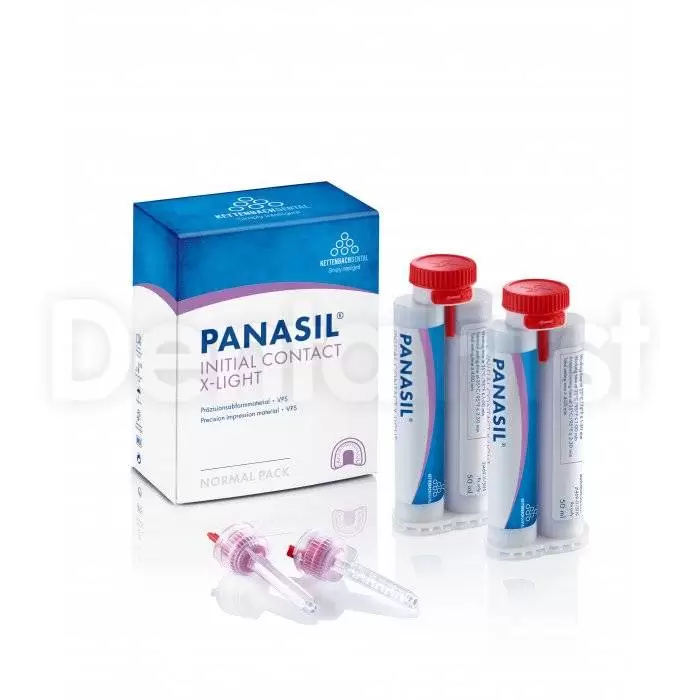 Panasil - Ваш путь к идеальным оттискам! Panasil initial Light - представляет собой корригирующий материал на основе А-силикона с особенно высокой начальной гидрофильностью для точных оттисков. Он доступен в трех версиях: X-Light - очень низкая вязкость, Light - низкая вязкость, Regular - средняя вязкость. Самые гидрофильные среди корригирующих материалов на рынке впечатляют и прекрасно сочетаются с базовыми материалами. После подготовки борозды происходит немедленное и непрерывное увлажнение поверхностей зубов благодаря гидрофильным свойствам. Ранний контакт с поверхностью и скорость, с которой растекается материал - существенно повышают точность снятия оттиска. Применение Комплектация Преимущества Простой рабочий процесс: Оптимальная текучесть, основанная на исключительной начальной гидрофильности, обеспечивает надежность и точность даже в сложных ситуациях, например, проблемный гемостаз. Размерно стабильное восстановление Удобный рабочий процесс: Быстро и легко наносится с помощью всех обычных пистолетов-дозаторов, например, Applyfix 4 для оттискных материалов Исключительная текучесть и высокая тиксотропность: затекает в узкие щели и не стекает с зуба     Какой продукт вам подойдет? Всегда правильный продукт: Материал является гидрофильным с первой секунды. Это подтверждается измерением контактного угла: чем быстрее и ровнее капля воды растекается по еще не застывшему материалу, тем более выражена гидрофильность материала. У initial contact угол контакта составляет менее 10C всего за 3 секунды. Разновидности катриджей Jumbo Области применения Корригирующий оттиск   Берется после снятия абразивного и индикационного слоя комбинированного оттиска для устранения неточностей и ошибок. Он позволяет врачу скорректировать форму и размер оттиска перед о