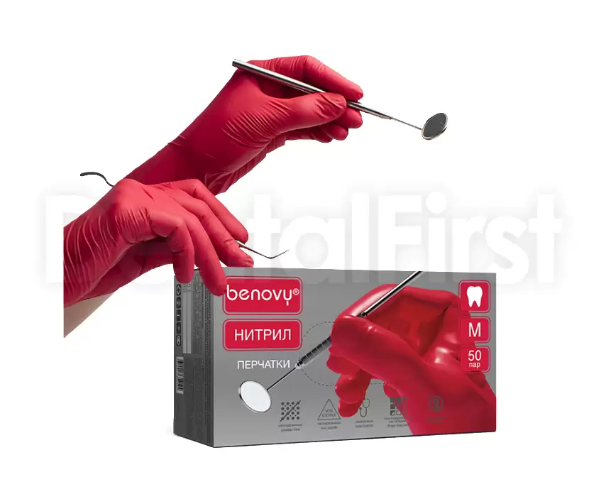 Перчатки Benovy нитриловые красные (100шт) XS