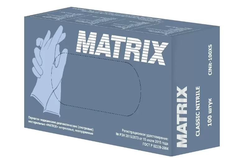 4. / Перчатки медицинские диагностические нитриловые голубые Matrix Classic Nitrile (100шт) M