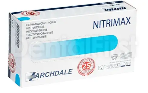 Перчатки нитриловые NitriMAX от Archdale - высококачественные одноразовые перчатки, обеспечивающие надежную защиту рук при работе в стоматологии, медицинских учреждениях и лабораториях. Изготовлены из прочного и эластичного нитрила, не вызывающего аллергических реакций, что делает их идеальной альтернативой латексу. Перчатки NitriMAX обладают отличной тактильной чувствительностью, что обеспечивает точную работу с инструментами и материалами. Эргономичная форма и анатомический крой обеспечивают комфортное ношение даже при длительных процедурах.