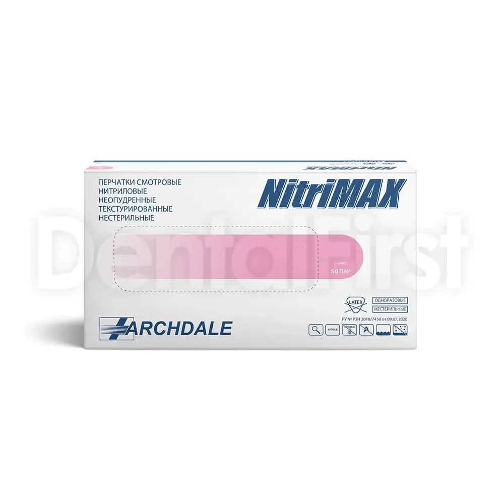 Перчатки нитриловые NitriMAX от Archdale - высококачественные одноразовые перчатки, обеспечивающие надежную защиту рук при работе в стоматологии, медицинских учреждениях и лабораториях. Изготовлены из прочного и эластичного нитрила, не вызывающего аллергических реакций, что делает их идеальной альтернативой латексу. Перчатки NitriMAX обладают отличной тактильной чувствительностью, что обеспечивает точную работу с инструментами и материалами. Эргономичная форма и анатомический крой обеспечивают комфортное ношение даже при длительных процедурах.